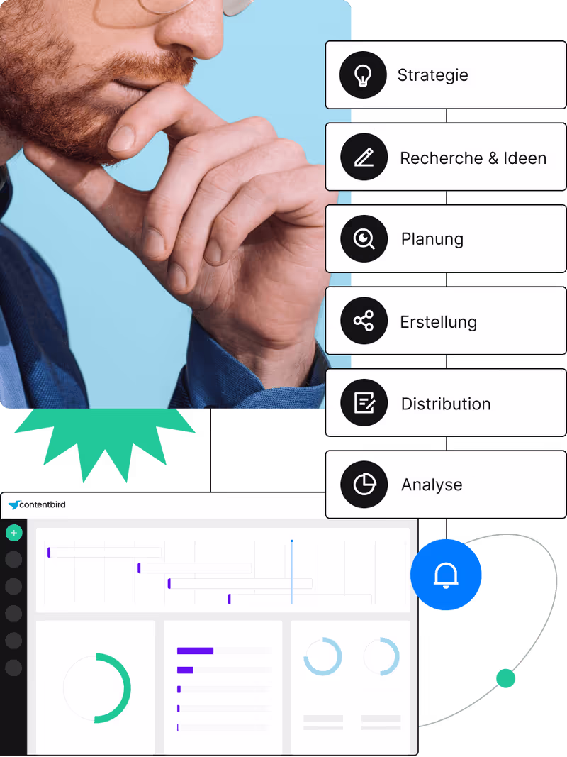- Durch contentbird's Analyse von W-Fragen kannst Du Deine Content-Ideen auf Basis realer Nutzerbedürfnisse entwickeln