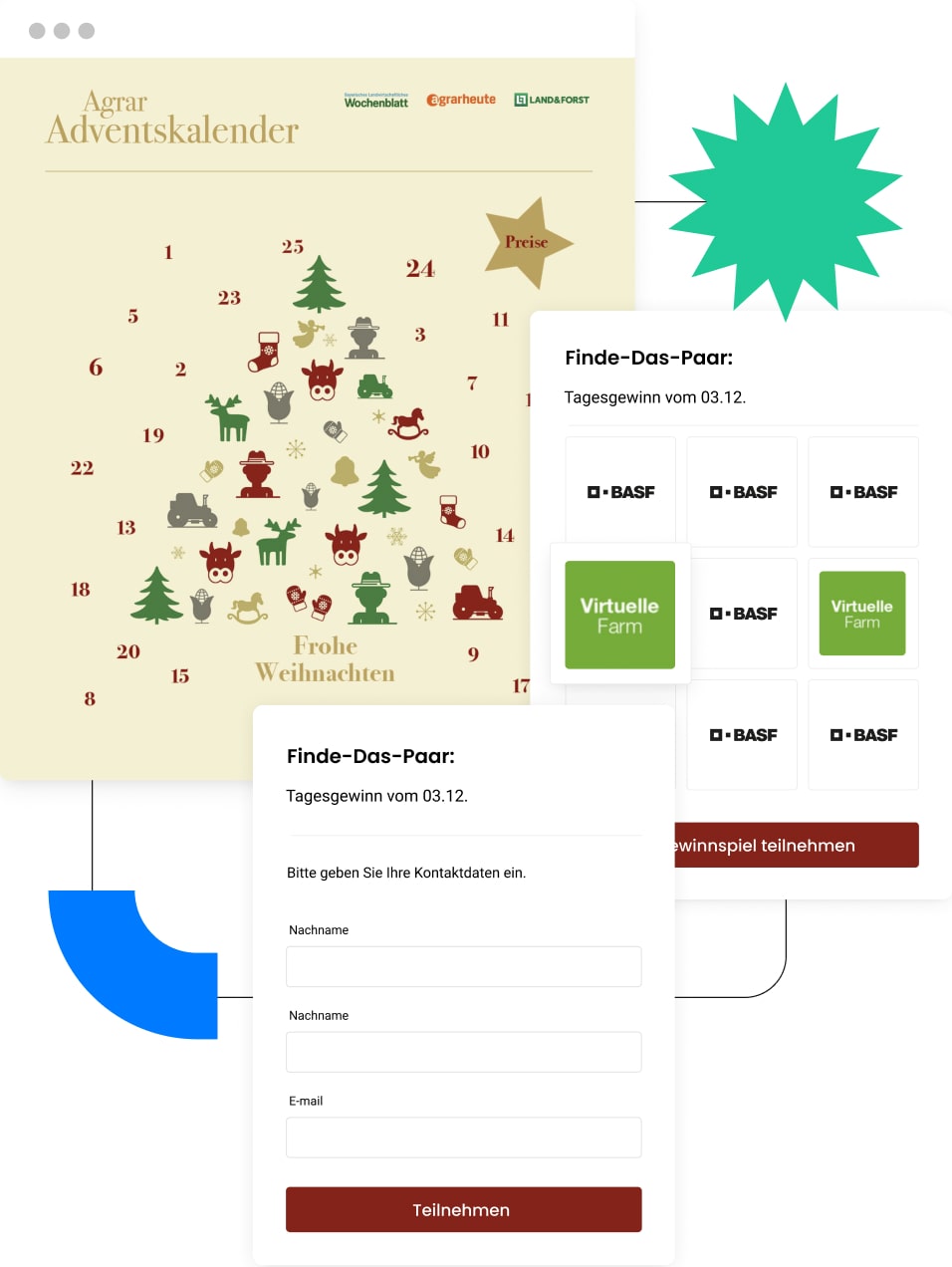 Zeit für Geschenke und Wunscherfüllung. Der digitale Adventskalender ist das perfekte Marketing-Instrument für die stimmungsvolle Vorweihnachtszeit. Eine wundervolle Bescherung für eure User - und für euch Marketer. Verzaubert eure Zielgruppe interaktiv durch eine glitzernde Adventszeit voller wunderbarer Inhalte mit spannenden Spielen, Rezepten, Gutscheinen, tollen Geschenken und Gewinnen. Hier bleibt kein Wunsch unerfüllt. Mit diesem beliebten interaktiven Format ist es kinderleicht, wertvolle Leads zu sammeln und die Verweildauer und das Engagement auf eurer Website und damit die Loyalität zu eurer Brand zu erhöhen. Beschenkt eure Kunden, Partner und Mitarbeiter. Natürlich ist eure Weihnachtskampagne in eurer individuellen CI und eigenem Look & Feel.