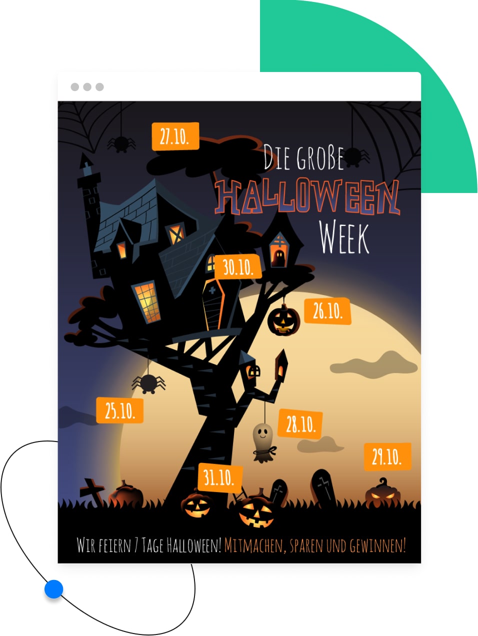 Halloween ist inzwischen - auch bei uns - nicht mehr weg zu denken. Nutze dieses aufregende Ereignis zur Unterstützung eurer Marketing-Ziele und unterhalte eure Zielgruppe eine Woche lang mit einem faszinierenden Halloween-Kalender mit dramatisch tollen Inhalten und atemberaubenden Angeboten, einem fesselnden Finde-das-Paar oder einem spannenden Verpixel-Puzzle. Halloween ist jedes Jahr am 31. Oktober.